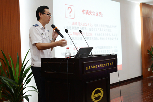 培训会上,安委办主任张超回顾了今年以来车检院开展的各项安全生产工作。随后,重庆市政安消防安全培训中心的唐教官结合车检院实际情况与近期发生的火灾案例,深入浅出地讲解了消防安全知识,详细介绍了新能源车起火应急处置方法及灭火技巧。